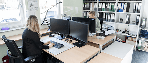 Bei uns erwartet Dich ein voll digitaler und modern ausgerüsteter Arbeitsplatz auf dem neuesten Stand mit mehreren Bildschirmen pro Mitarbeiter zuzüglich Laptop.